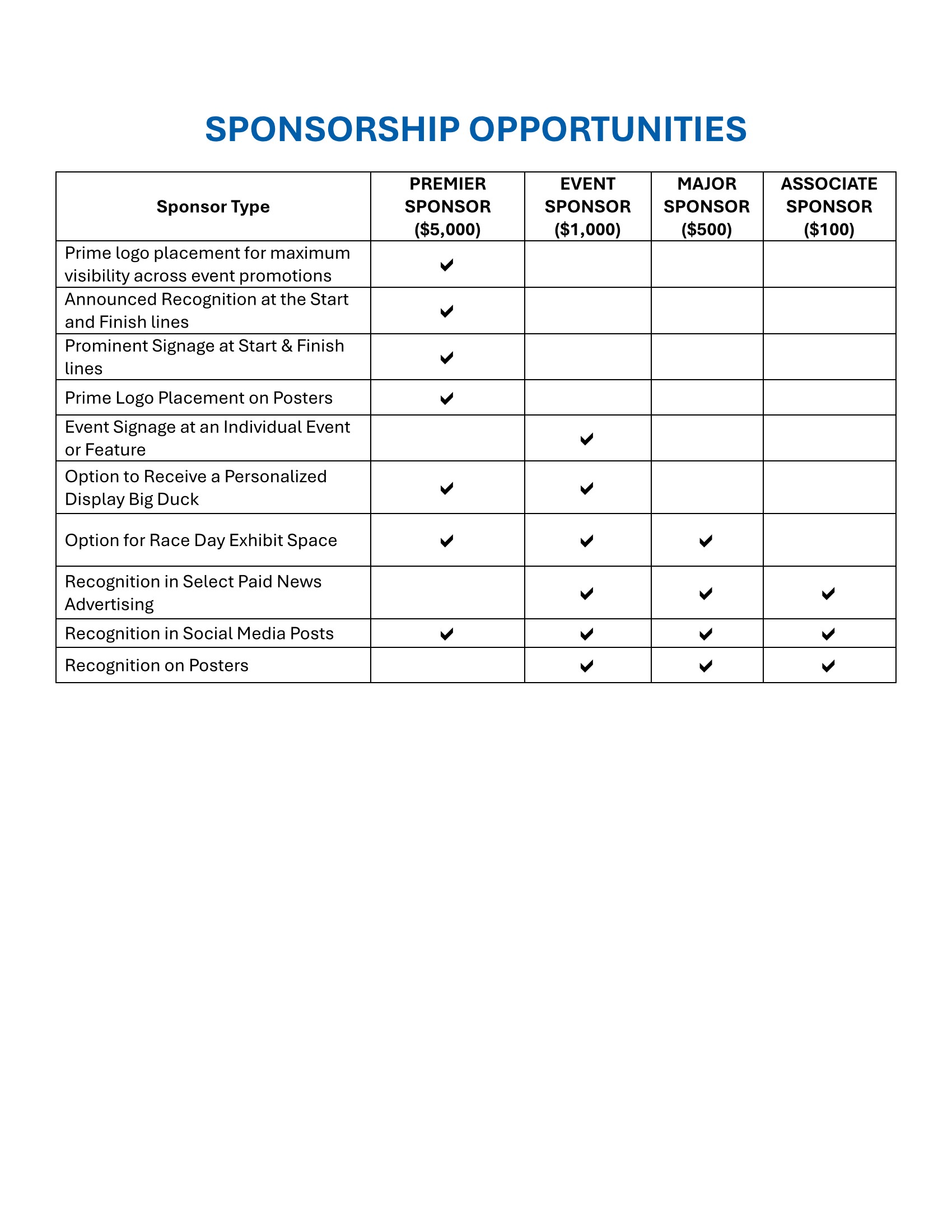 Sponsorship Matrix